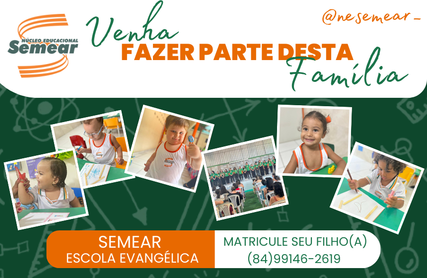 No Núcleo Educacional Semear, cada criança é valorizada como um ser único, com potencial para crescer, aprender e florescer. Nossas atividades vão muito além do conteúdo tradicional: aqui, o aprendizado acontece com alegria, criatividade e fé.